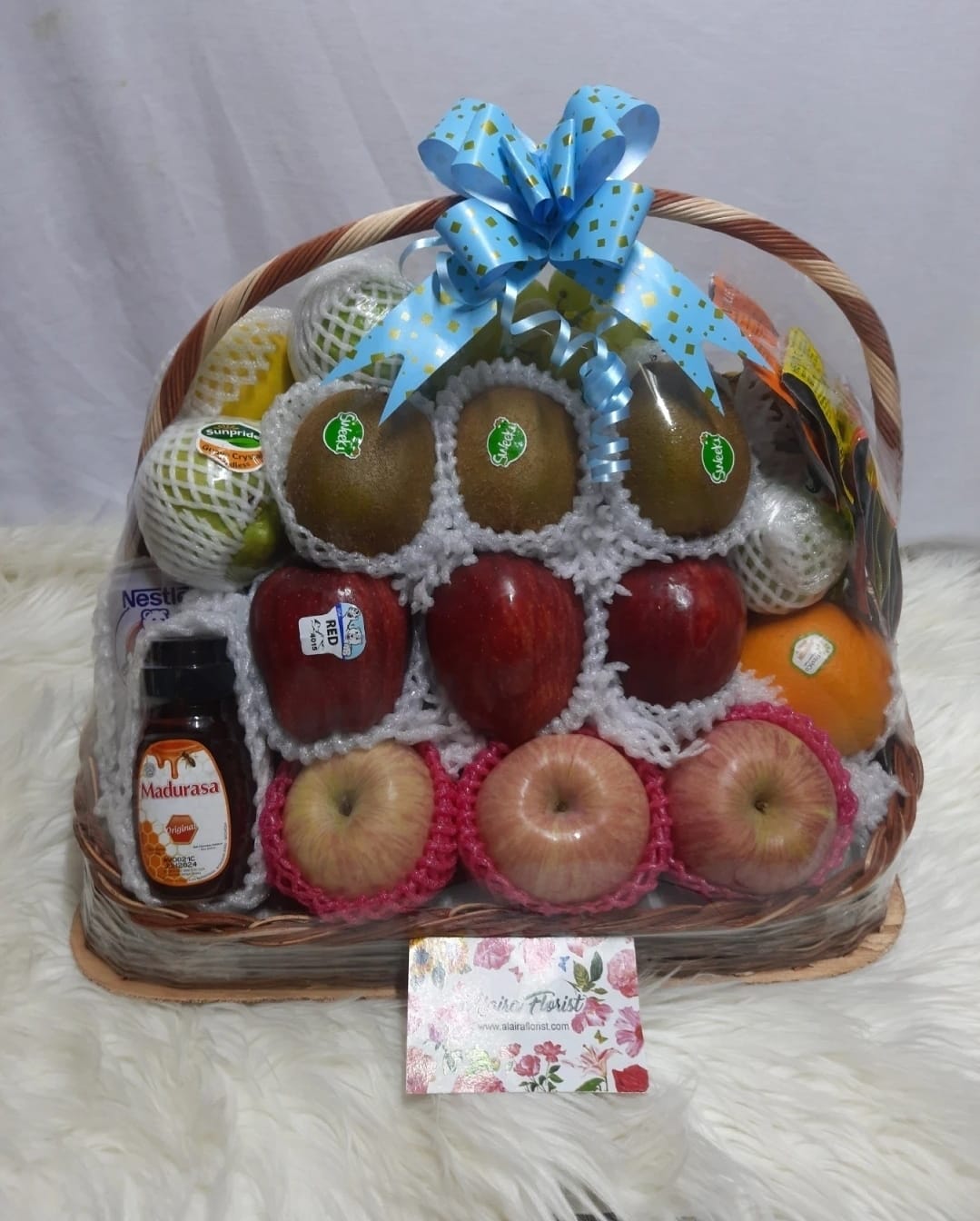 Be the first to review “Fruit hampers with vitamin, madu, & bear brand”