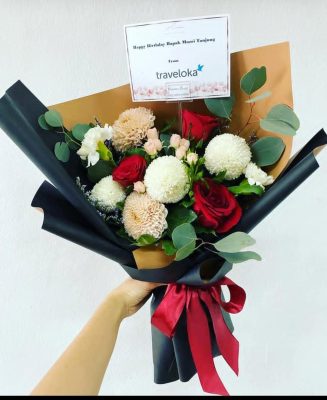 Be the first to review “Handbouquet – Chrysant, Pom2, Carnation & Red Roses”
